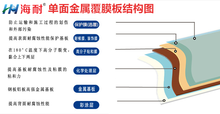 海耐鋁板覆膜是在金屬基材上面覆了一層膜。用高光膜或幻彩膜、耐候膜、隔熱膜。經高分子膠膜熱壓覆合而成。海耐鋁板覆膜光澤鮮艷,可挑選花色品種多,防水、防火,具有優良的耐久性(耐候性、耐蝕性、耐化學性)和抗污能力,防紫外線性能優越。不同品牌的鋁板覆膜,其基材材質和厚度不同,海耐鋁板覆膜(咨詢:0510-83326008的材質和厚度也不同。高分子納米覆膜是一種新式覆膜工藝,一層膜一層金屬板經過高溫高壓壓合而成。海耐鋁板覆膜的優點是: